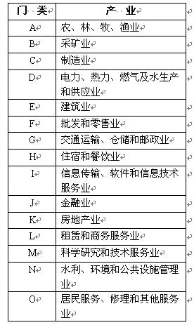 表1. 《国民经济行业分类》中的行业分类