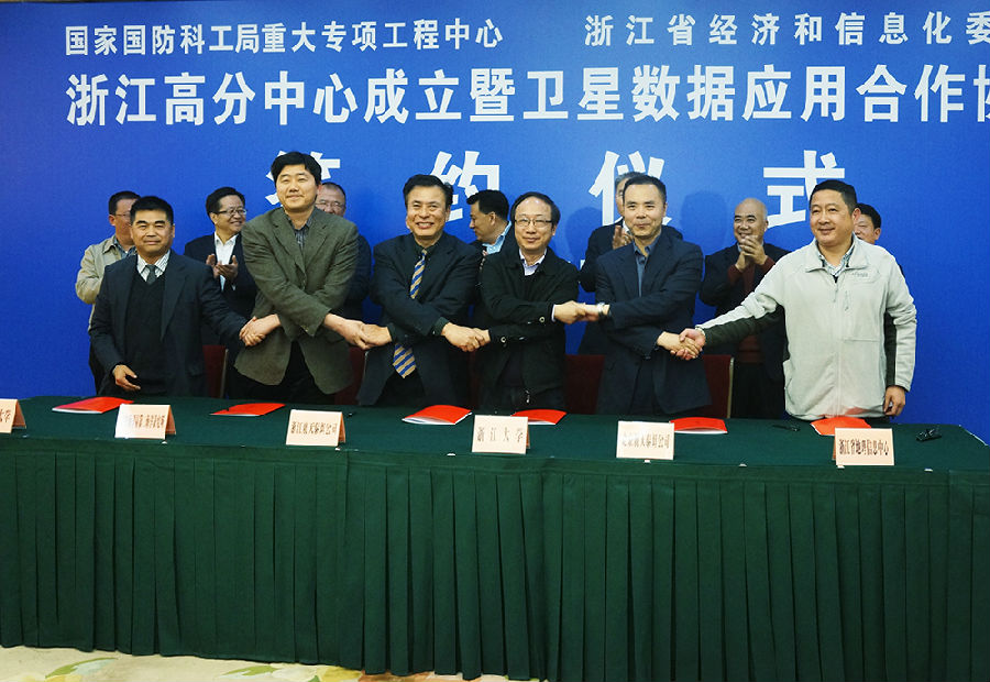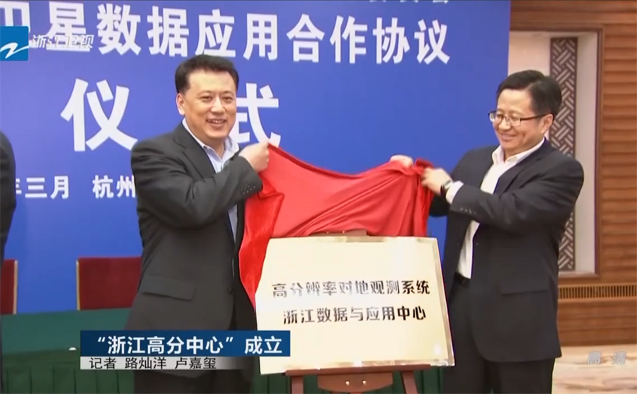3月24日下午,省人民大会堂,高分辨率对地观测系统浙江中心正式揭牌成立,高分辨率对地观测系统浙江数据与应用中心(简称“高分专项浙江中心”)正式落户德清地理信息小镇,浙江省常务副省长袁家军,国防科工局副局长吴艳华,航天科工集团副总经理方向明,浙江大学党委书记金德水等领导出席成立活动并见证了签约。