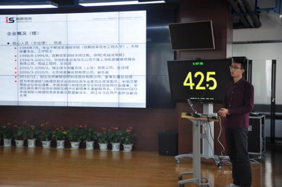 随后,德清数联空间信息技术有限公司的项目“基于高精度室内定位技术的展馆热点分析”、浙江卓图地理信息技术有限公司的项目“便民就业管理信息系统”、杭州经纬信息技术股份有限公司德清分公司的项目“针对测绘用无人机多旋翼系统的培训”、浙江易伟航信息技术有限公司的项目“桔子地图——海外旅游地图”、德清锐派信息科技有限公司的项目“篮球赛事信息服务平台”、湖州合创智能科技有限公司的项目“基于地理信息的农产品溯源整体解决方案”依次上台进行了项目展示与演说。参赛项目在进行广泛市场调研和分析的基础上,制作了将产品或服务推向市场的完整、具体、有实施可能的商业计划书,其中包括项目的技术、市场前景、经营策略、资金需求等方面,并展示了项目团队的队员、未来规划和商业模式等。