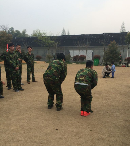 拓展训练首先以轻松诙谐的方式开始了热身活动——自我介绍的同时用屁股划出自己的姓,全场瞬间就活跃了起来。所有队员依次介绍自己之后,应教练的要求,所有队员分成两个小队----分别取名为“帝王队”和“测量队”,每个队分别选出各自的队长、副队长以及“劳力士”。在他们的带领下,两个队正式进入精彩又激烈的比拼当中......