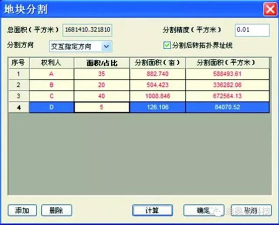 具有按小地块合同面积(或占比)分割大地块的功能,提供交互定向和统一方向两种方式灵活选择,完美解决界限不明的大地块分割问题。
