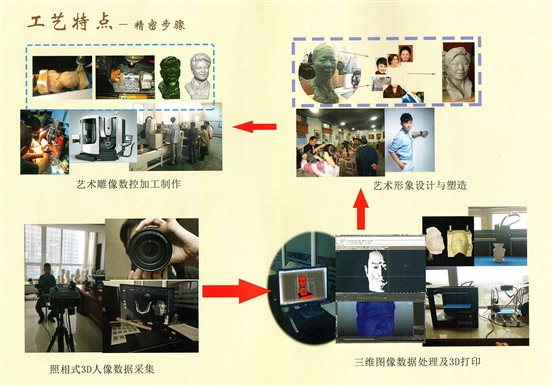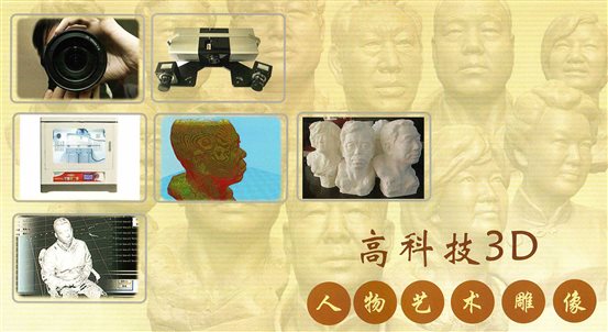 主要通过激光扫描仪对人体头部进行现场的激光扫描,来获取比较精准的多角度、多方位的人体摸样和面部轮廓,再通过艺术处理,使之富有人的灵魂,把人的神情、面部特征等表现得淋漓尽致。